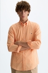 Regular fit shirt in cotton poplin with small gingham checks. Button-down collar, back yoke, buttoned shirt cuffs and contrasting button thread. Contrasting cube logo embroidered on the chest. Model is 187 cm | 6' 1'' and is wearing a size 3.