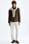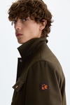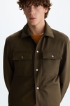 Relaxed fit overshirt in laminated textured technical fabric. Spread collar, personalised snap placket fastening, two welt pockets with interior Cinta PG and two chest snap-fastening flap pockets. Shirt-style cuffs with snap fastening, interior lining with patch pocket and rubber patch with Cubo PG at the left sleeve. Model is 187 cm | 6' 2'' and is wearing a size Small.