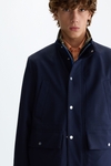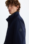 Regular fit parka coat in waterproof laminated textured technical fabric. Stand collar and contrasting two-way zip fastening with personalised metallic snap-fastening front placket. Two lower flap pockets with personalised snap fastening and side opening with interior Cinta PG and two upper welt pockets. Interior lining and rubber patch with Cubo PG at the left sleeve. Model is 187 cm | 6' 1'' and is wearing a size Medium.